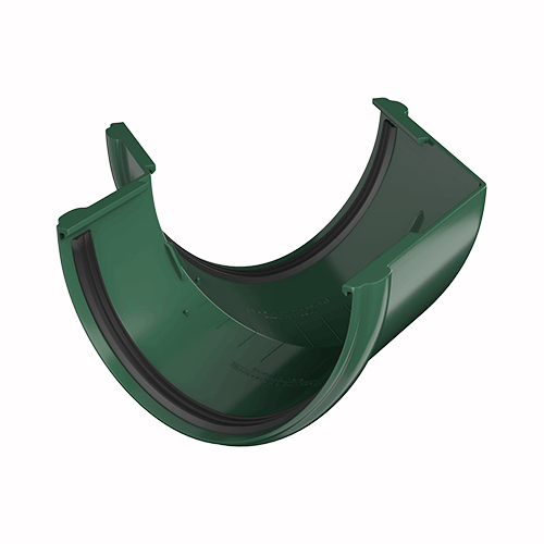 Угол желоба предназначен для соединения желобов на карнизах, которые лежат в одной плоскости, но расположены перпендикулярно относительно друг друга.